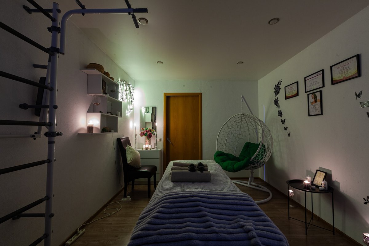 Здесь вы можете посетить профессионального мастера-массажиста. Часто говорят, что для получения от массажа стойкого оздоровительного эффекта его нужно делать долго и регулярно. И действительно: антицеллюлитное действие, улучшение осанки, ускорение метаболизма - все это вещи, которые имеют накопительный эффект. Однако даже эпизодический массаж позволит вам снять напряжение, расслабит спазмированные мышцы или тонизирует ослабленные, улучшит настроение - в общем, повысит качество вашей жизни здесь и сейчас!